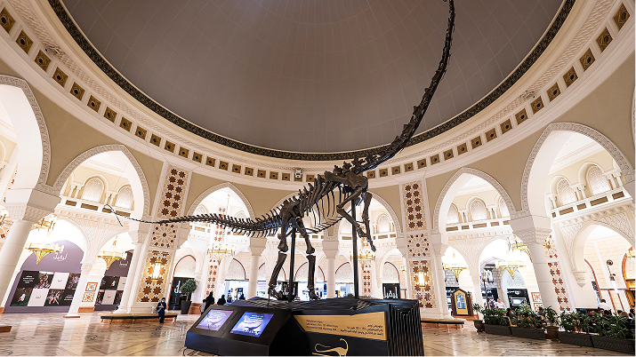 Inside, that ambition is visible at every turn. The aquarium’s acrylic panel, once the largest of its kind and certified by Guinness World Records, spans an entire atrium. Behind it lives a collection of more than 150 marine species, including one of the world’s largest gatherings of sand tiger sharks. Nearby stands the Dubai Dino, a 155-million-year-old Diplodocus longus excavated in Wyoming, with 90% of its bones original. Few natural history museums display a specimen this complete, sitting casually in the middle of a retail concourse. Just meters away, an Olympic-sized ice rink holds hockey games in a city where summer temperatures casually push past forty degrees.