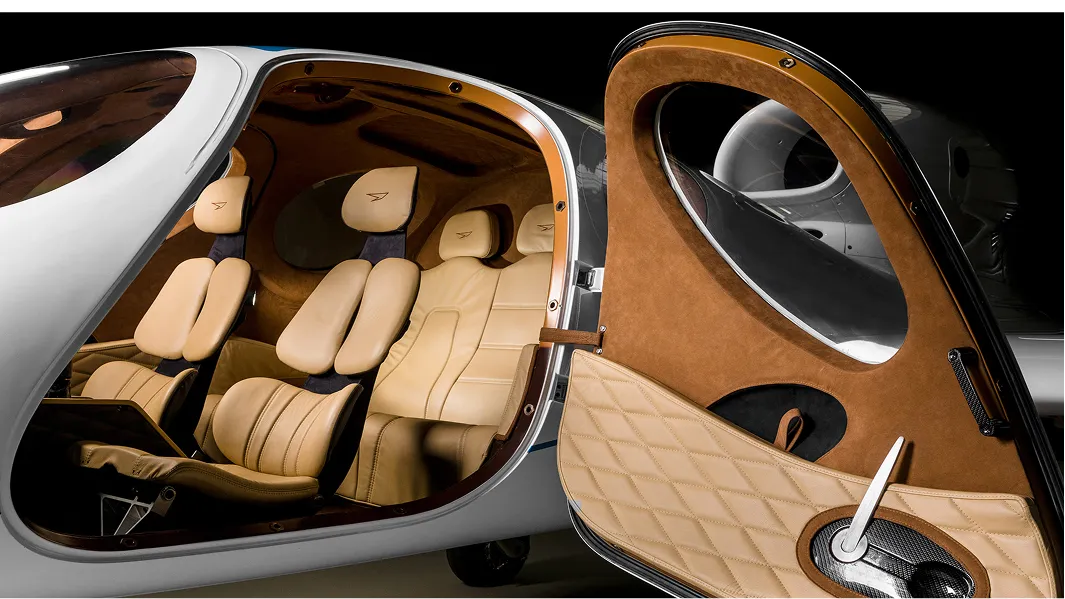 On the ground, the LAR 1 is a conversation starter: you can fit it on runways that make bigger jets nervous. The fixed gear is rugged for grass strips, but it’ll cruise at up to 437 mph, high above traffic and weather. The climb performance – over 4,300 feet per minute – is the kind of number that gets your flying friends’ attention. It uses a Williams FJ33-5A turbofan, found in bigger jets, and burns far less fuel than most in its class. Range? About 1,900 kilometers with four on board, which means Berlin to Nice, or Dubai to Mumbai, with margin to spare.